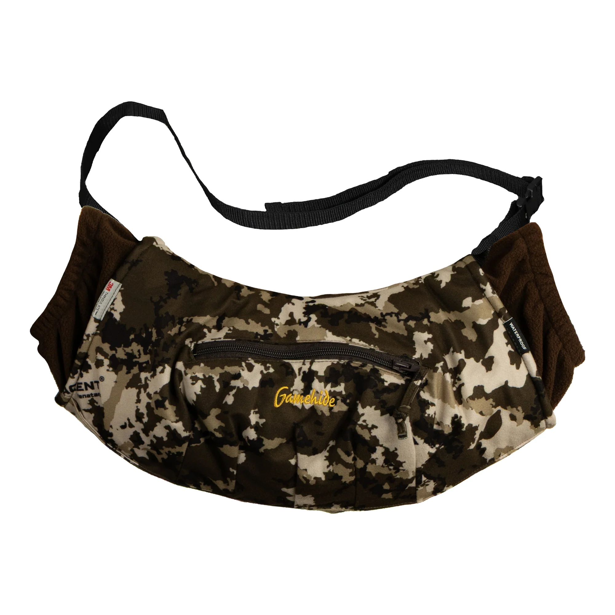 This newly redesigned hand muff features Thinsulate insulation for extra warmth and comfort. The elastic fleece openings provide a snug, draft-free seal on wrists. Rugged adjustable waist strap, handy exterior pocket with zip closure and waterproof protection!