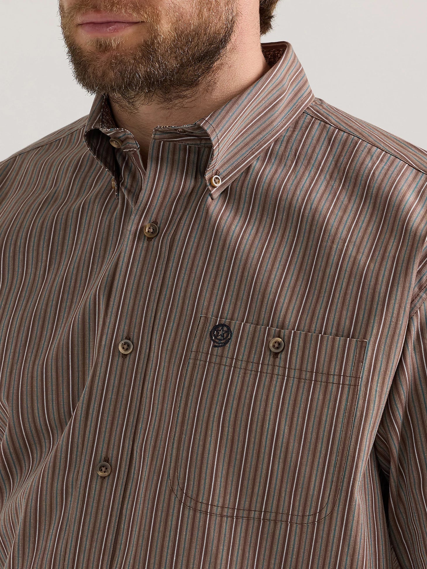 Wrangler George Strait Long Sleeve Button Down One Pocket Shirt – Brown Cliff Stripe
