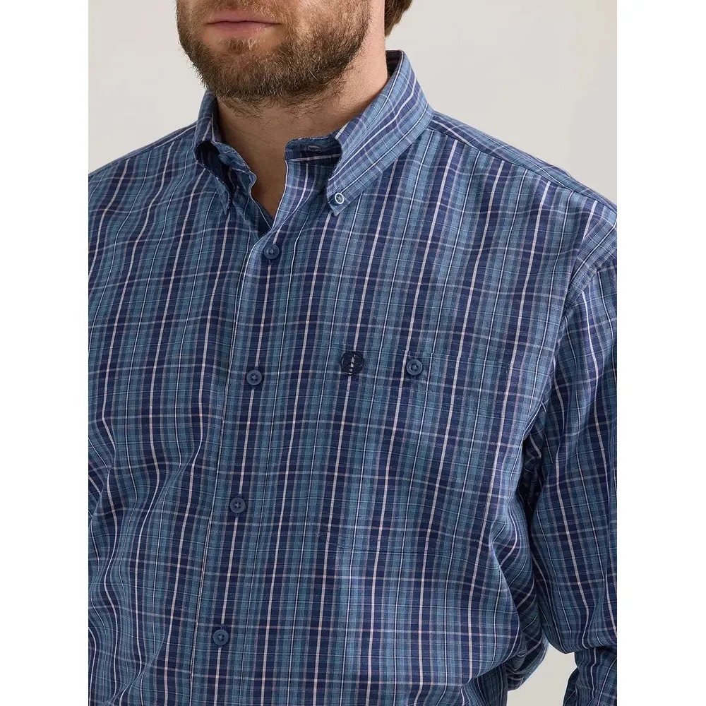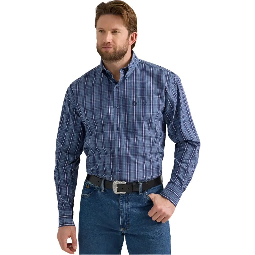 Wrangler George Strait One Pocket Long Sleeve Shirt – Navy Plaid