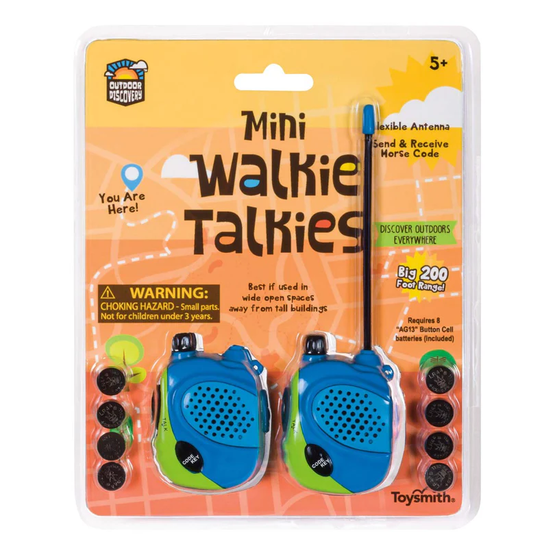 Brightly colored and simple to use, the Mini Walkie Talkies are ready for instant fun, just add batteries and the adventure begins. they’re durable enough for everyday play yet lightweight and portable for on-the-go fun.