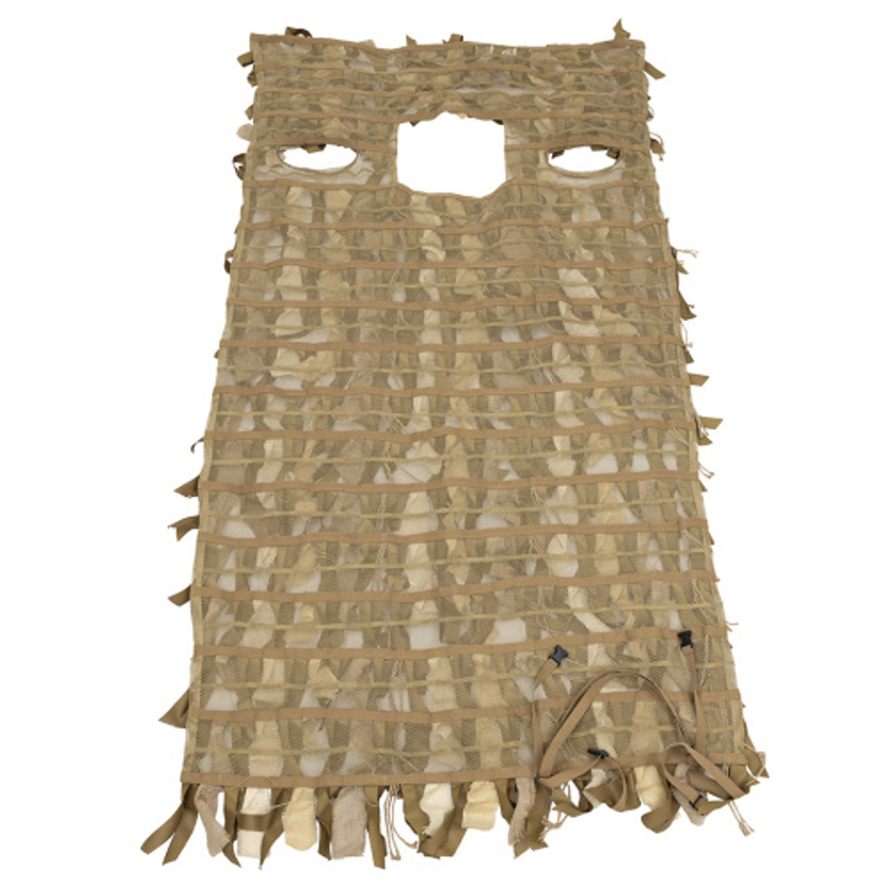 - True hybrid field cover, can be used as a blanket or worn as a ghillie suit