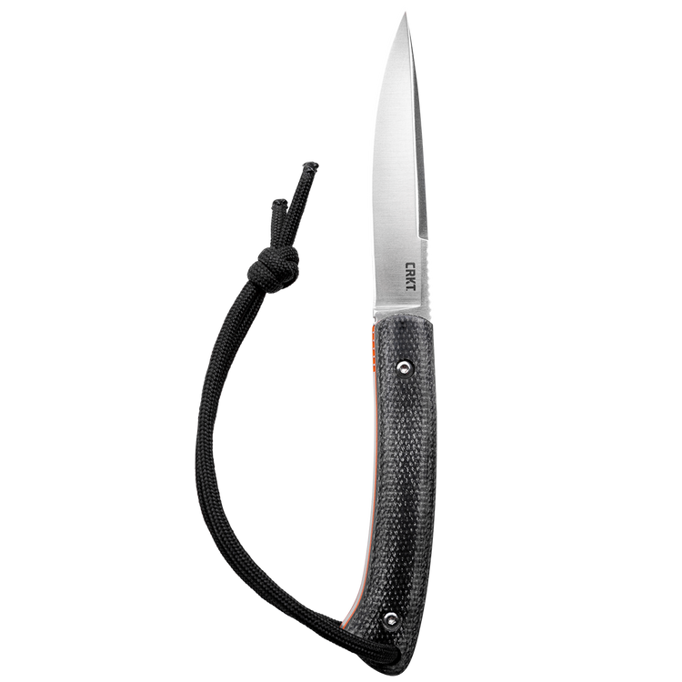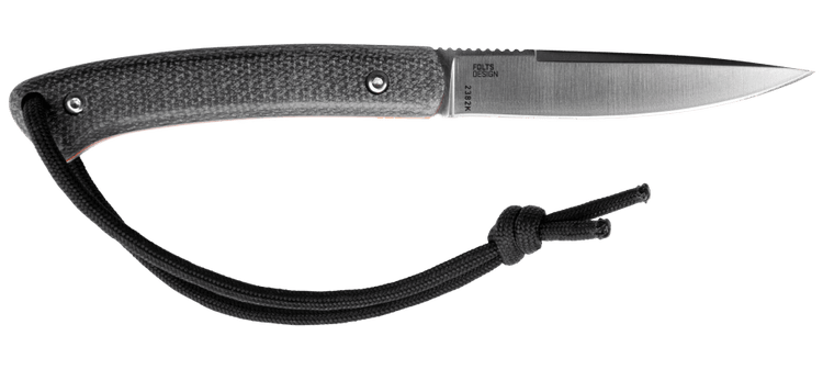 The fixed-blade Biwa hunting and fishing knife tucks away as inconspicuously as a few dry flies, but comes out swinging when a high-alpine trout hits your line. This version features a black micarta handle, a full-tang blade with upgraded 12C27 steel, and a stitched black leather sheath.