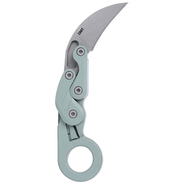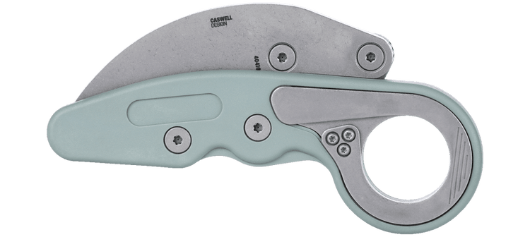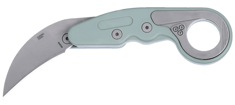 The Provoke Grivory morphing karambit knife draws on ancient design but it’s hiding a futuristic secret. The first knife ever to feature Kinematic technology, it stays neatly tucked away in transit and comes to life when called for duty. This version is built with a green Grivory handle—a strong, lightweight, engineered thermoplastic—making it more lightweight, adept, and crafted to go anywhere. The easy-to-sharpen stonewash blade is durable and ages well. To operate, nudge the upper crossbar with your thumb—while the rest of your fingers firmly grasp the handle—and the blade lunges to life and locks into place. Shift the discreet lever at the base of the finger loop and the blade retreats into its closed position. The pocket clip is also a world’s first—sitting almost completely flush with the handle and likewise activated with light thumb pressure.