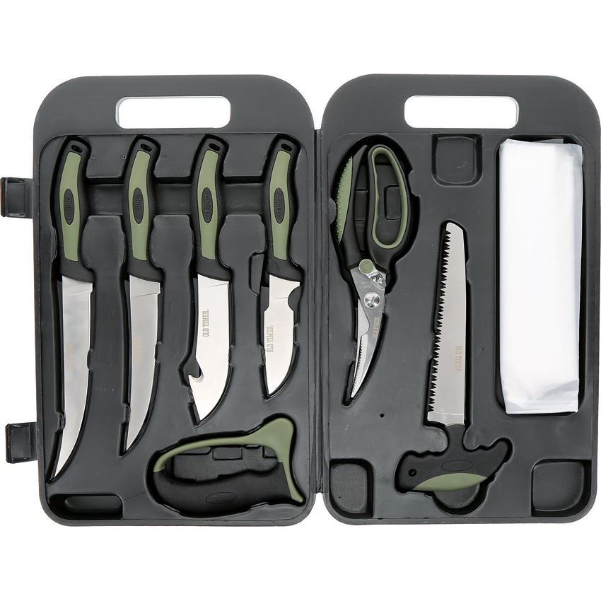 This Field Dressing Kit contains all the tools required to fully process game out in the field. Besides the boning, skinning, and gut hook knives, this kit also contains a pair of field dressing gloves to protect your hands while you cut and process the carcass. It also comes with a sharpener to maintain your blades after use and a hard-sided plastic carrying case to transport these great knives.