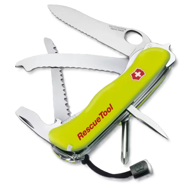 Victorinox worked for years with professional rescuers to design the Rescue Tool pocket knife. It features a seatbelt cutter, a window breaker and a shatterproof glass saw to cut through shatterproof glass. It comes in a nylon pouch and all of its tools are specially designed to work equally well for both left and right handed users.